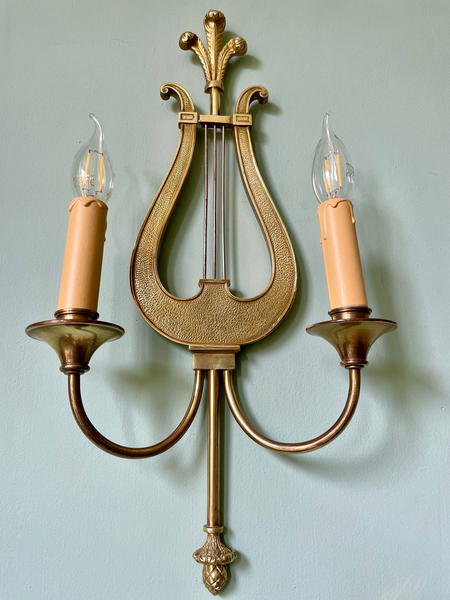 1950s Maison Charles (Stamped & Numbered) Brass Lyre Wall Lights