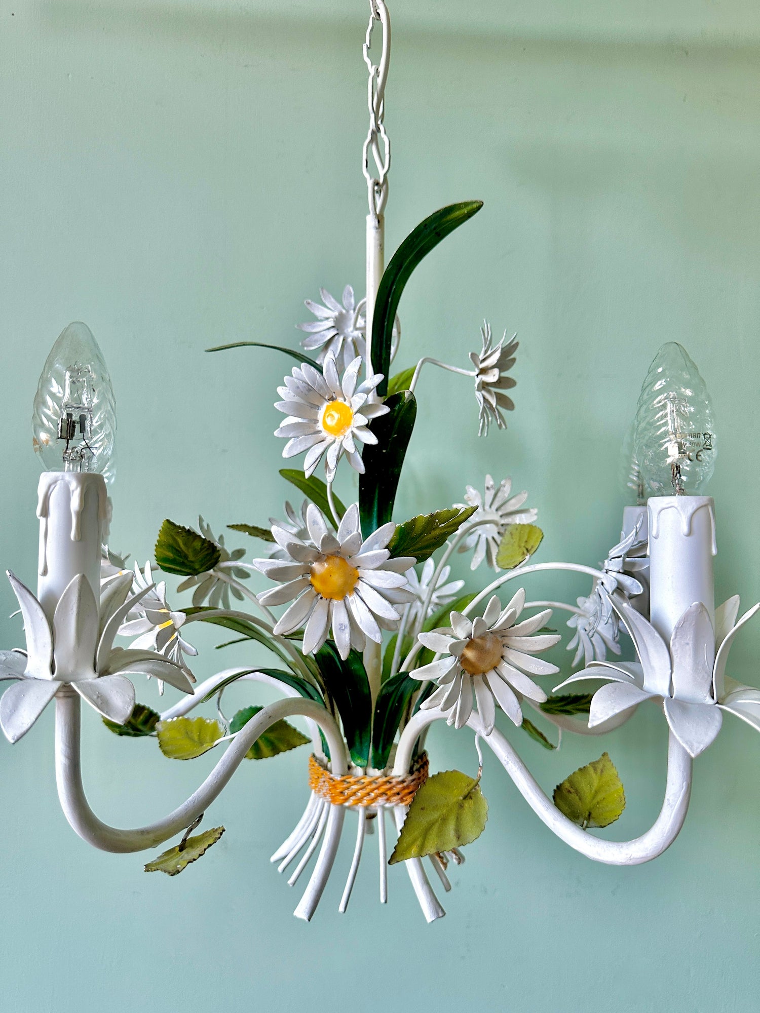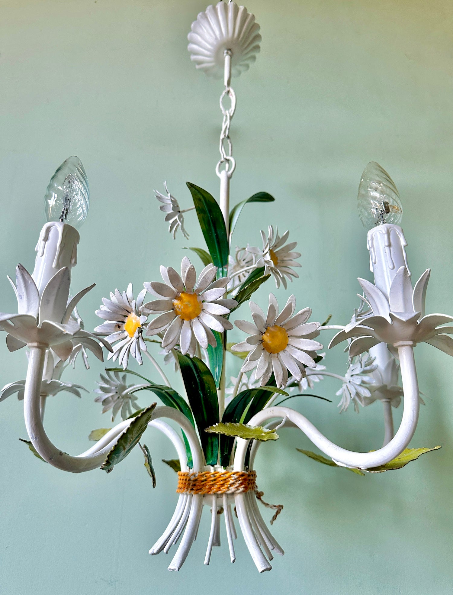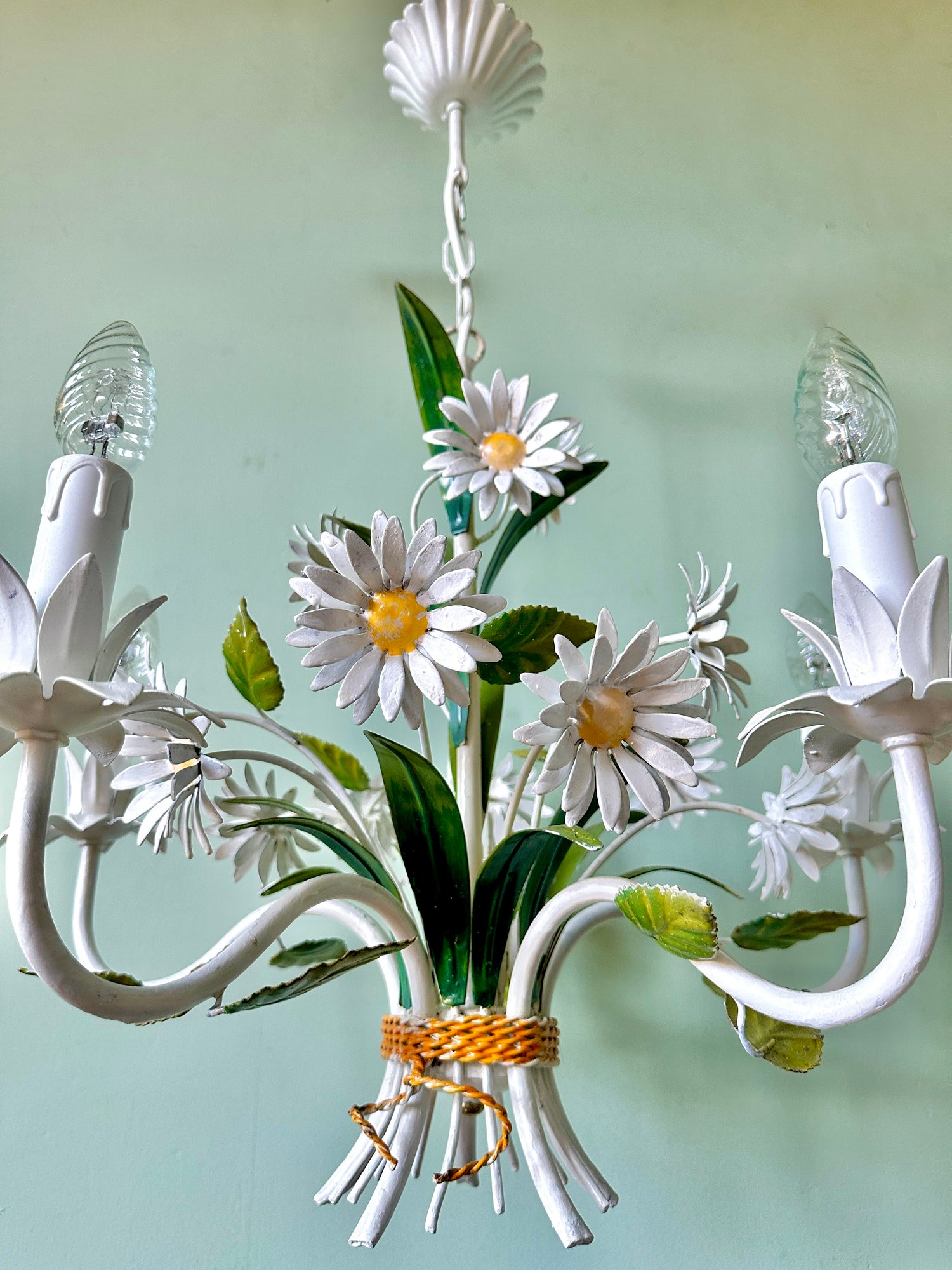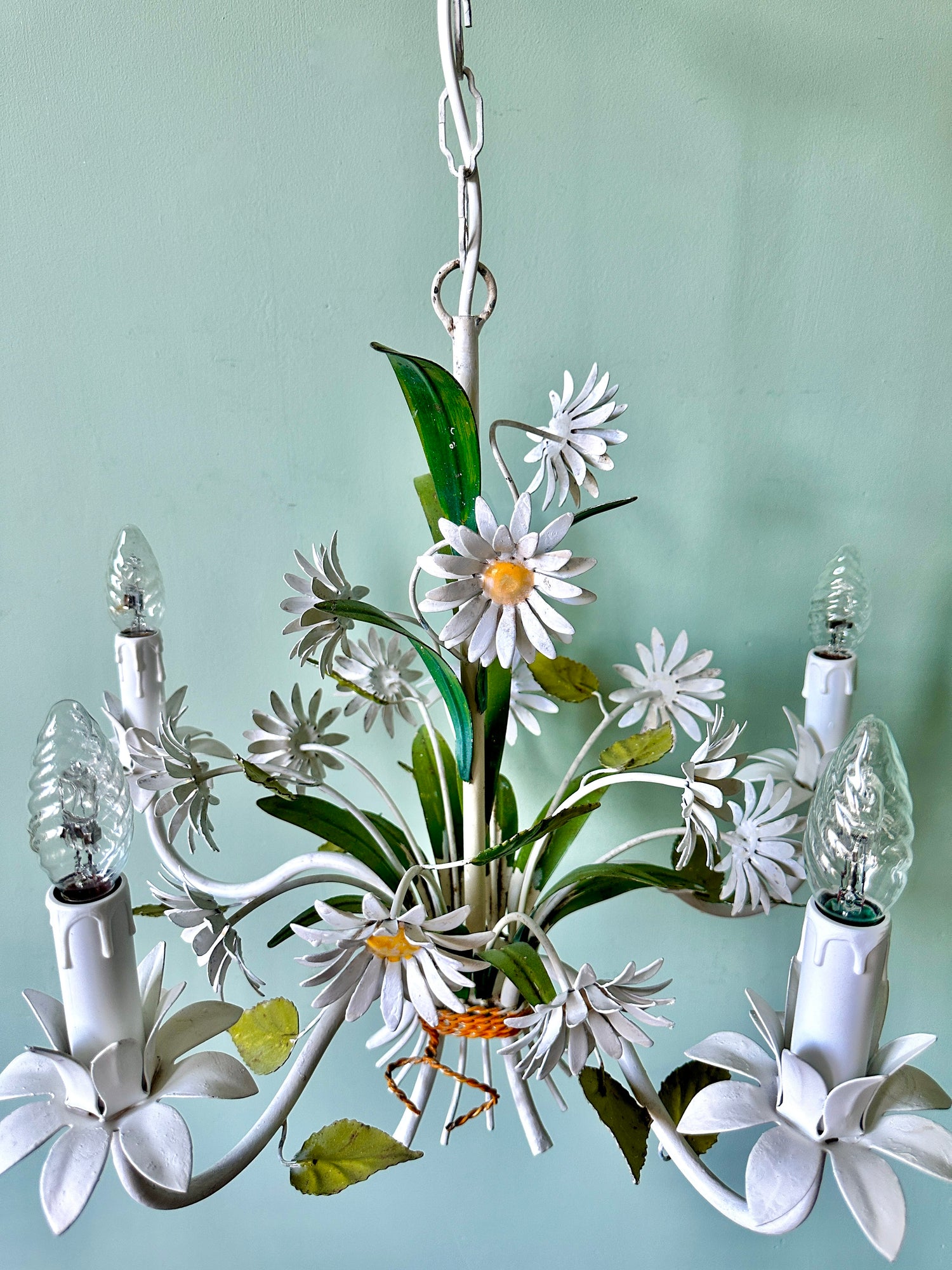 A very lovely, hand-painted, five-arm ceiling light with scalloped ceiling rose. In very good condition with light and attractive wear. The chandelier has been rewired, fitted with new bulb holders & sleeves and PAT tested.