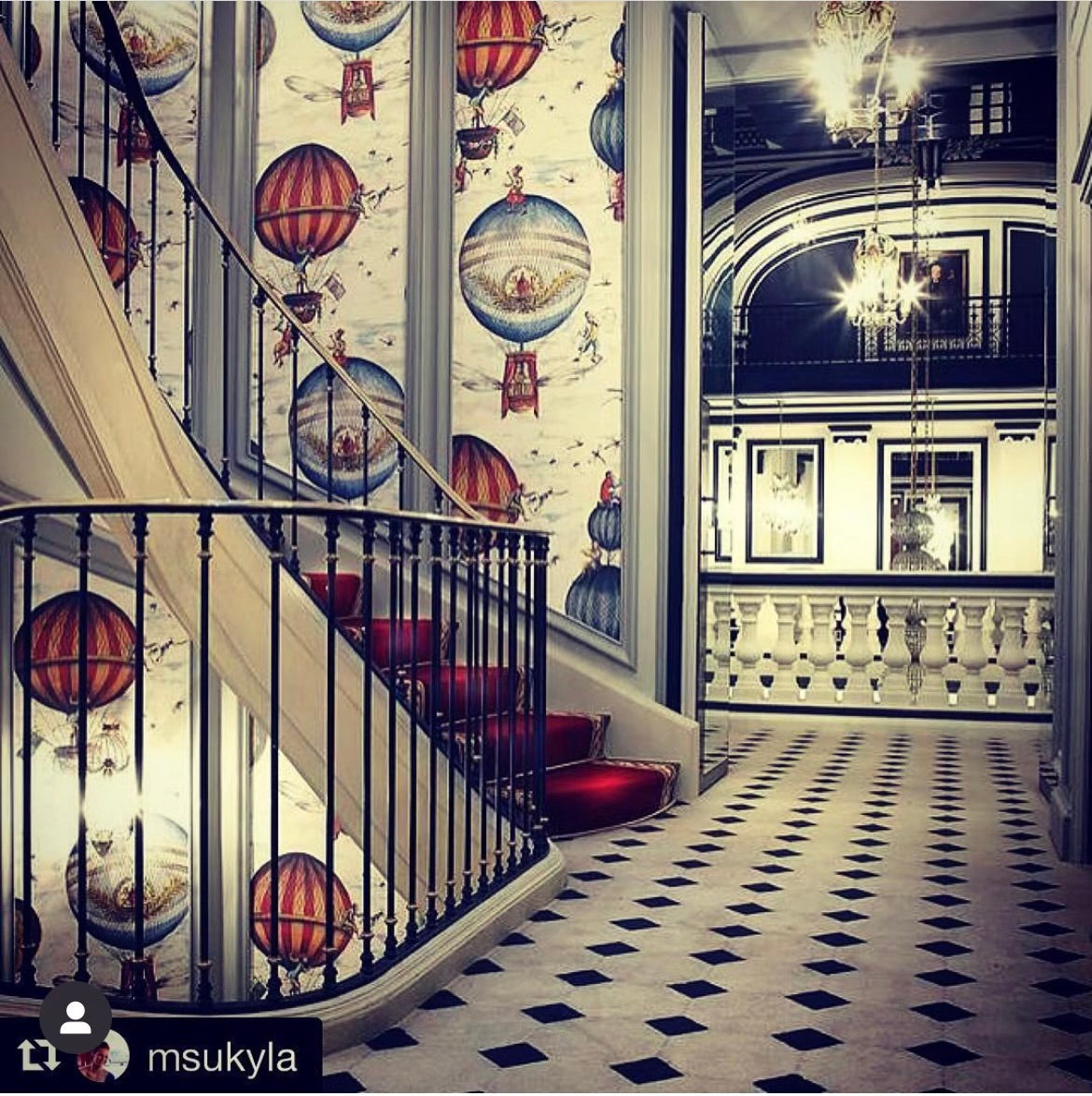 Gorgeous ceiling lights sourced from the prestigious Saint James Club Paris, the landing site of France's first hot-air balloon flights (photos of the lights in situ below). Hand-painted and made in Italy, these three-arm chandeliers are in excellent condition and have been fitted with new bulb holders and PAT tested.