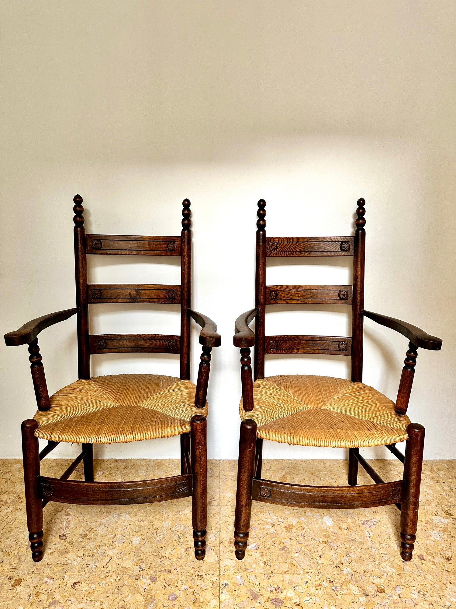 Early C20th Breton Rush Seat Armchairs (Available Individually)