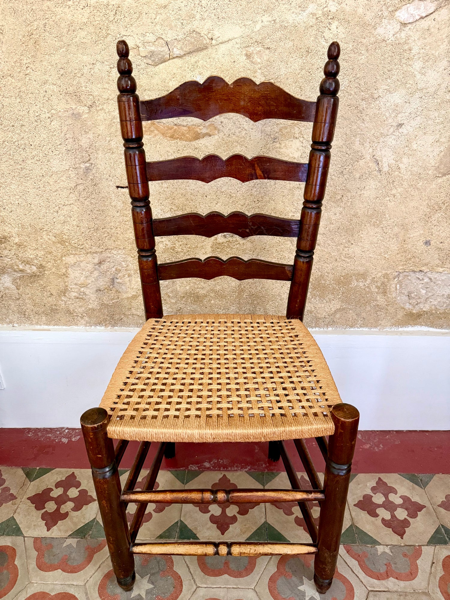 Set of four rustic French farmhouse chairs.