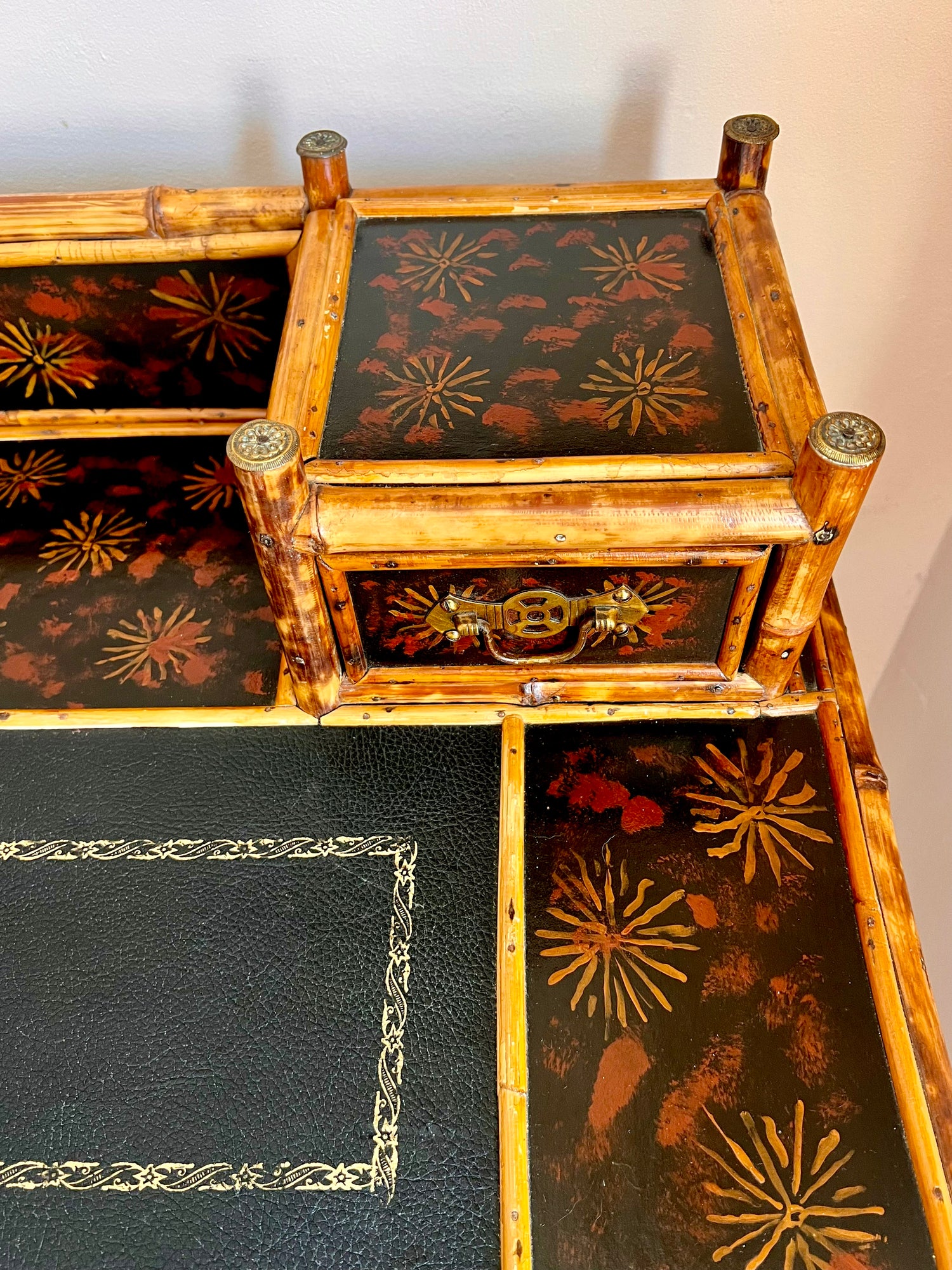 Victorian Lacquered Tiger Bamboo Writing Desk or Dressing Table